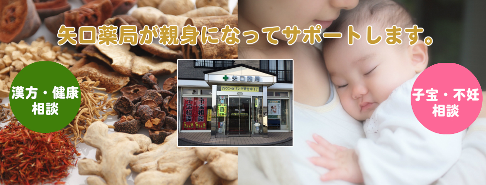 矢口薬局では、漢方をはじめ、食事や生活習慣など総合的に「妊娠しやすい身体づくり」をお手伝いさせていただきます。
